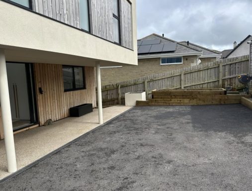 The removal of a raised garden to add space for additional parking including a set of steps and a stone wall.