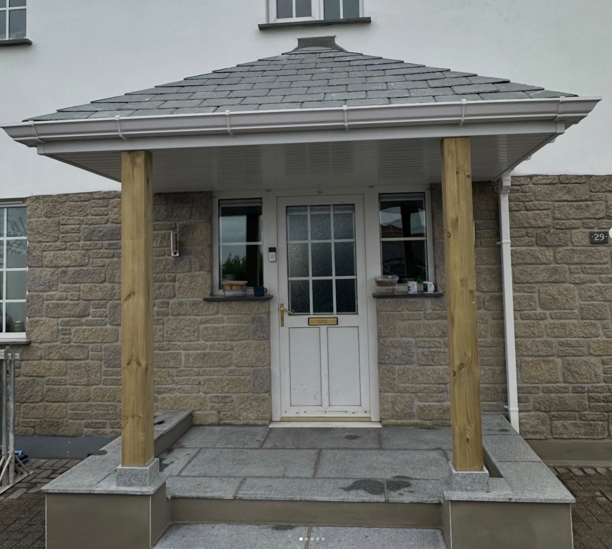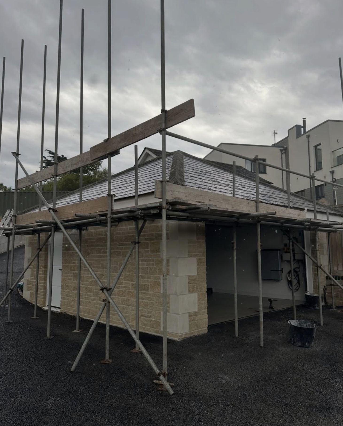 Instillation of concrete piles and a block and beam covered with slurry mix and surrounded by walling stone