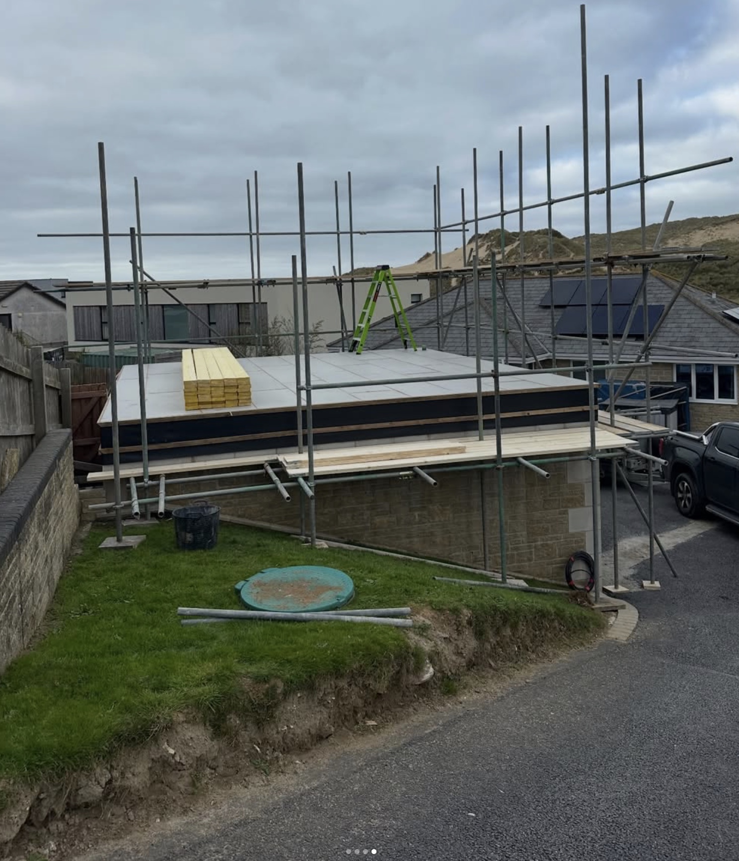 Replacement of a rotten flat roof. Stripped back old felt to find a completely rotten deck with nearly no insulation. Fitted a new insulated warm roof structure. Topped off with EDPM rubber and new fascia boards.